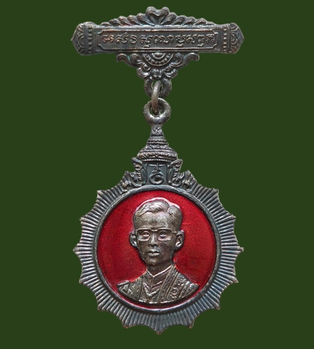 เข็มกลัดเทิดพระเกียรติ ร.9 ครบ 5 รอบ จตุเสมาสมาคม กะไหล่เงินลงยาสีแดง