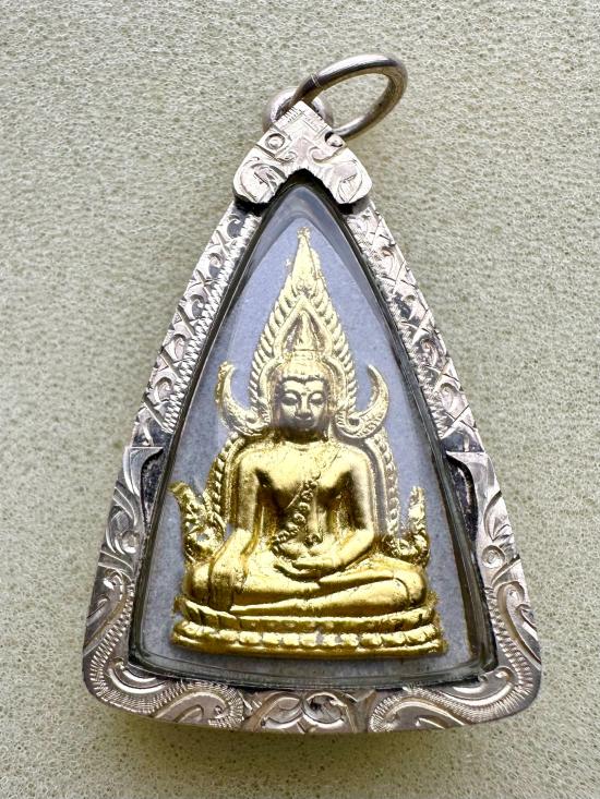 พระพุทธชินราช ญสส. เนื้อผงปิดทอง หลวงปู่หมุนฯปลุกเสก ปี 2543 มาพร้อมเลี่ยมเงินสวยๆหนาๆ
