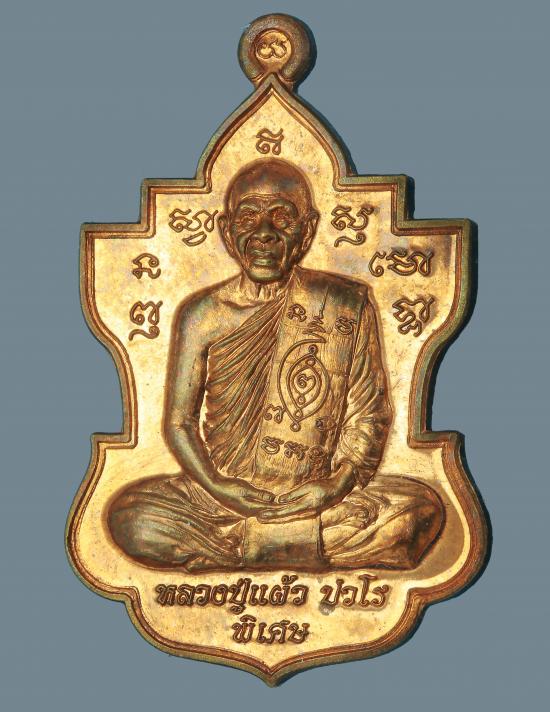 หลวงปู่แผ้ว วัดรางหมัน ใบสาเก เนื้อทองแดง สภาพสวย |