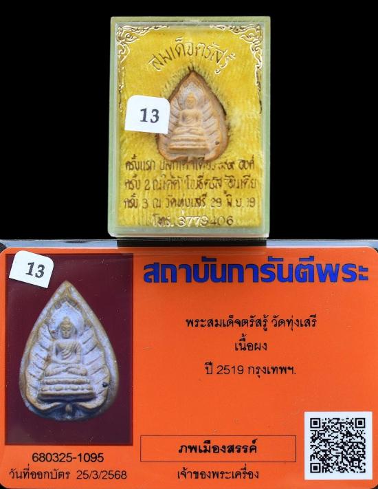 ( 13 ) พระสมเด็จตรัสรู้ วัดทุ่งเสรี เนื้อผงพุทธคุณ ปี 2519 หลวงปู่โต๊ะ , อ.ชุม ไชยคีรี และ พระเกจิรวมปลุกเสก มีกล่อง + บัตรรับรองพระแท้การันตีพระ |