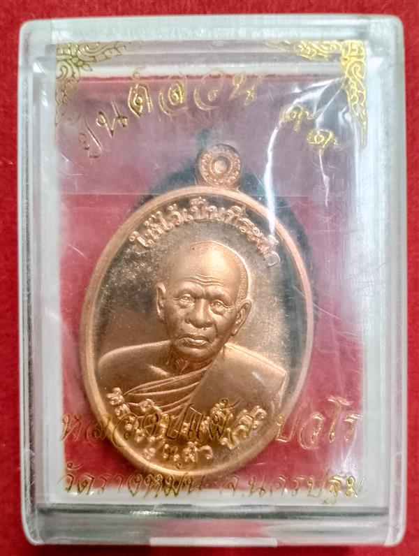 เหรียญยันต์สวน 99 หลวงปู่แผ้ว ปวโร วัดรางหมัน ที่ระลึกอายุ 99 ปี เนื้อทองแดง ตอกโค๊ดกำกับ พร้อมกล่อง รับประกันพระแท้ตามกติกา |