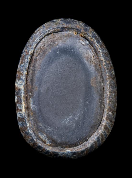เบี้ยแก้ เนื้อตะกั่วเก่า เขย่ามีเสียงดัง มีรอยจาร |
