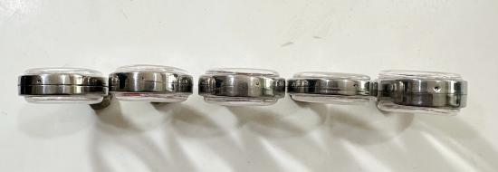 ตลับมือสองสแตนเลสรูปไข่ใส่เหรียญทั่วไป 5 ใบแบบเปิดหน้า-หลังขนาด 3.5 x 2.5 ซม. |