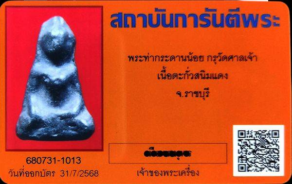 พระท่ากระดานน้อย กรุวัดศาลเจ้า เนื้อตะกั่วสนิมแดง จ.ราชบุรี พร้อมบัตรG...