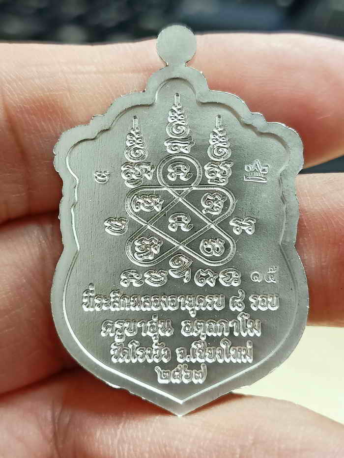 วัดใจ 100 เหรียญเสมา ที่ระลึกครบ 8 รอบ ครูบาอุ่น วัดโรงวัว จ.เชียงใหม่ 2567 ชุบเงิน ฝังพลอยขาว คลาสสิค หมายเลข 15 กล่องเดิม***ขึ้นชื่อเสมา 8 รอบ ต้องมา |