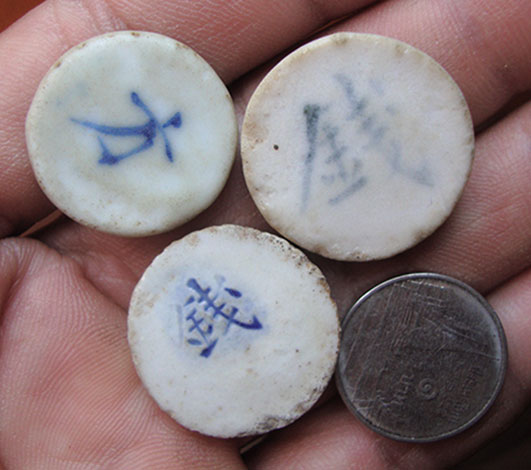 เหรียญจีน เนื้อกระเบื้อง ( 3 เหรียญ ) ไม่ทราบที่ครับ |