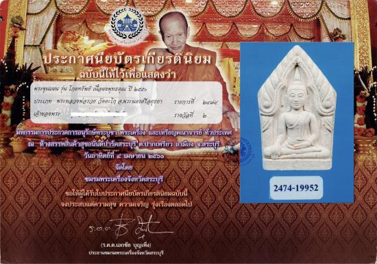 พระขุนแผนหลวงพ่อรวย วัดตะโก รุ่นโภคทรัพย์ จ.พระนครศรีอยุธยา เนื้อผง ปี 2550 (พร้อมใบประกาศ) |