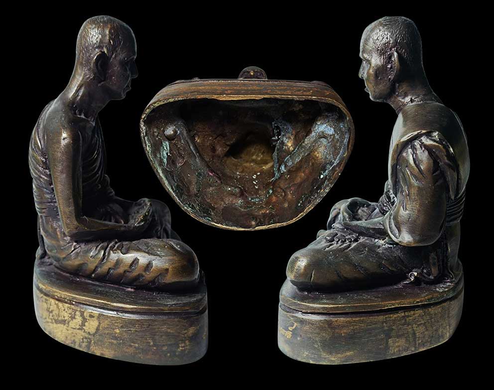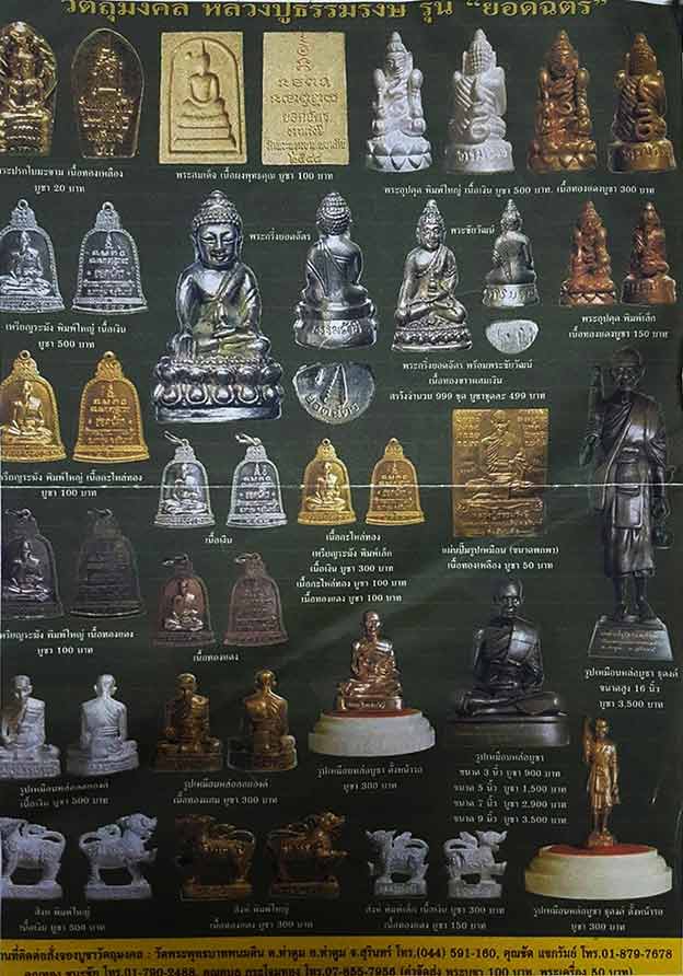 พระบูชา รุ่น ยอดฉัตร หลวงปู่ธรรมรังษี ปี 2548 เป็นพระรูปหล่อ เนื้อโลหะ ขนาดประมาณ 3 นิ้ว จัดสร้างโดย วัดพระพุทธบาทพนมดิน จ.สุรินทร์ |