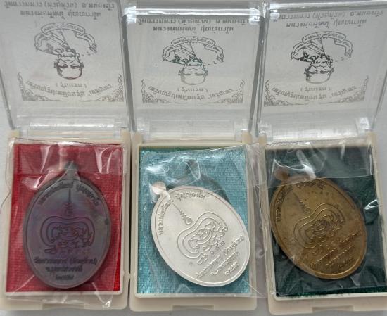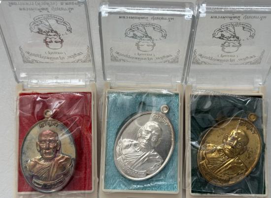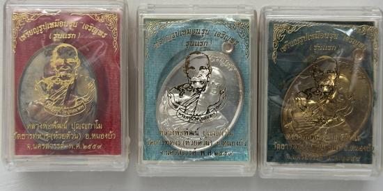 3เหรียญสวยๆ เหรีญเจริญพรรุ่นแรก หลวงพ่อพัฒน์ วัดห้วยด้วน ปี59 (กะไหล่เงินโบราณ+โลหะผสมชนวน+ทองเทวฤทธิ์) |