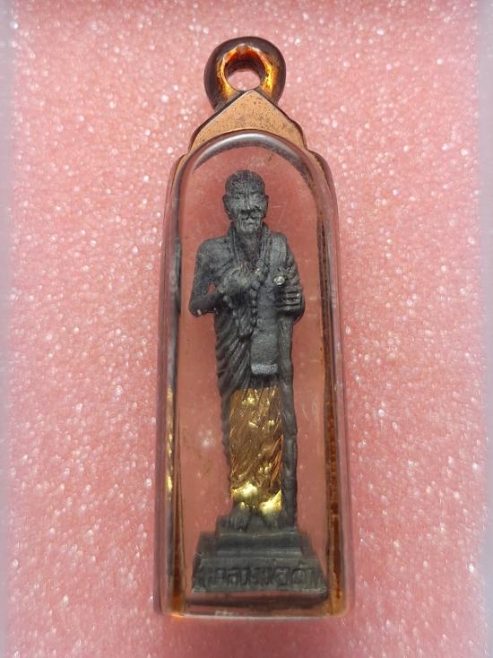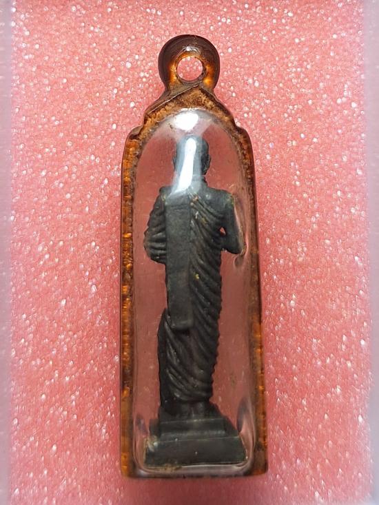 รูปหล่อลอยองค์ยืนถือไม้เท้าห้อยประคำหลวงพ่อคำ พร้อมเลี่ยมเลนส์อย่างดี เคาะเดียว |