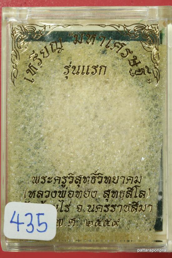 เหรียญหลวงพ่อทอง รุ่นมหาเศรษฐี ปี 2559 เนื้ออัลปาก้า หมายเลข 435 |