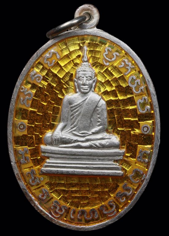 เคาะเดียวแดง เหรียญหลวงพ่อโบสถ์น้อย วัดอมรินทราราม เนื้อเงินลงยาสีเหลืองสร้างปี 2537..............2 |