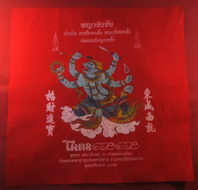 ผ้ายันต์ พญาชิงชัย พุทธา เทวาภิเษก ณ ศาลหลักเมือง วัดพระมหาธาตุวรมหาวิหาร จ.นครศรีธรรมราช พุทธศักราช ๒๕๕๐ ครับ (พระบ้าน ครับ) |