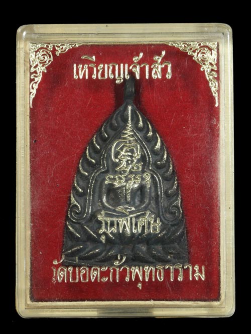 เหรียญเจ้าสัว "เนื้อเงิน" วัดบ่อตะกั่วพุทธาราม จ.นครปฐม มีรอยจารหลังเหรียญ สวย กล่องเดิม
