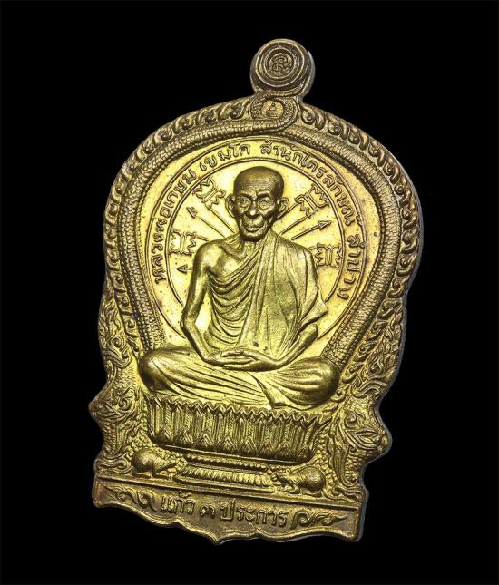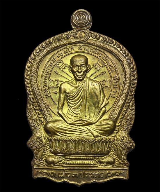 เหรียญ นั่งพาน 3 มต. เมตตา มีสตางค์ ไม่ตาย หลวงพ่อเกษม เขมโก เนื้อทองฝาบาตร ปี2537