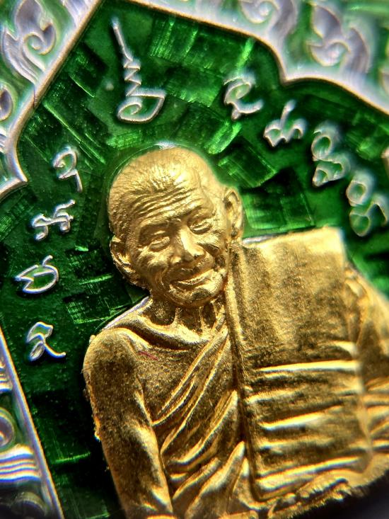 เหรียญ พิทักษ์ไทย ( แม่ทัพภาคที่๒ ) หลวงปู่มหาศิลา สิริจันโท วัดพระธาตุหมื่นหิน จ.กาฬสินธุ์ เนื้อเงิน ลงยาเขียว หน้ากากทองคำ พิมพ์เล็ก เลข ๓๕๘ มีกล่องเดิม ราคาจอง 5999 บาท