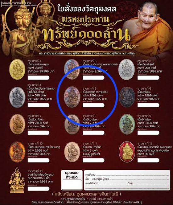 เหรียญ พรหมประทานทรัพย์๑๐๐ล้าน หลวงปู่มหาศิลา สิริจันโท ธรรมอุทยาน วัดพระธาตุหมื่นหิน จ.กาฬสินธุ์ เนื้อนวฤทธิ์ พลายเงิน เลข 931 เลี่ยมกันน้ำ มีกล่องเดิม |