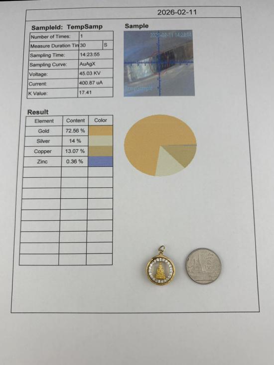 พระเลี่ยมทองคำ พร้อมใบยิงเปอร์เซ็น 72.56%