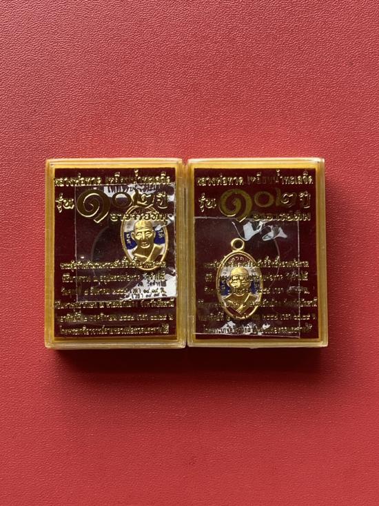 เคาะเดียวแดง เม็ดแตง 2องค์หลวงปู่ทวด รุ่น102ปีอาจารย์ทิม เนื้อชุบทองลงยาสีธงชาติ