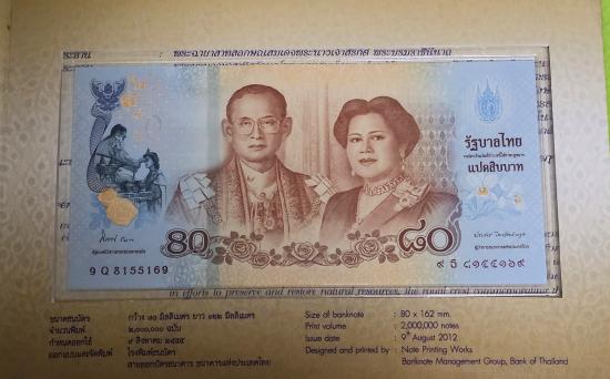 ธนบัตรเฉลิมพระเกียรติสมเด็จพระนางเจ้าสิริกิติ์ พระบรมราชินีนารถ เนื่องในโอกาสพระราชพิธีมหามงคลเฉลิมพระชนมพรรษา ๘๐ พรรษา ๑๒ สิงหาคม ๒๕๕๕ ราคาเปิดประมูล 100 บาท |