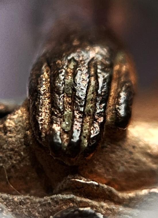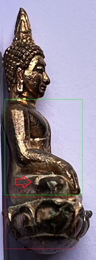 - เข่าซ้ายด้านบน มีตำหนิ เนื้อแหว่งหล่อไม่เต็มไม่สมบูรณ์ครับ