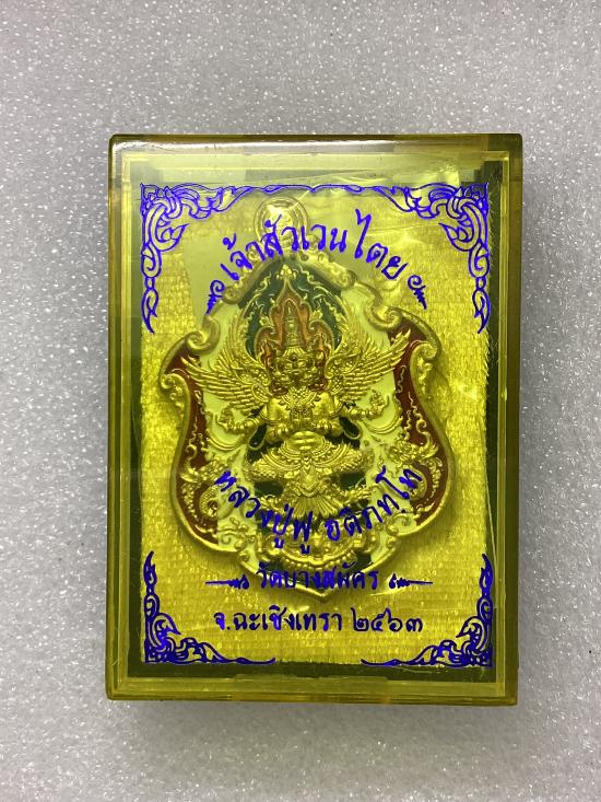 เคาะเดียวแดง 100 เหรียญพญาครุฑ รุ่น เจ้าสัวเวนไตย หลวงปู่ฟู อติภทฺโท วัดบางสมัคร จ.ฉะเชิงเทรา เนื้อทองทิพย์ ลงยา ธงชาติ กล่องเดิม |