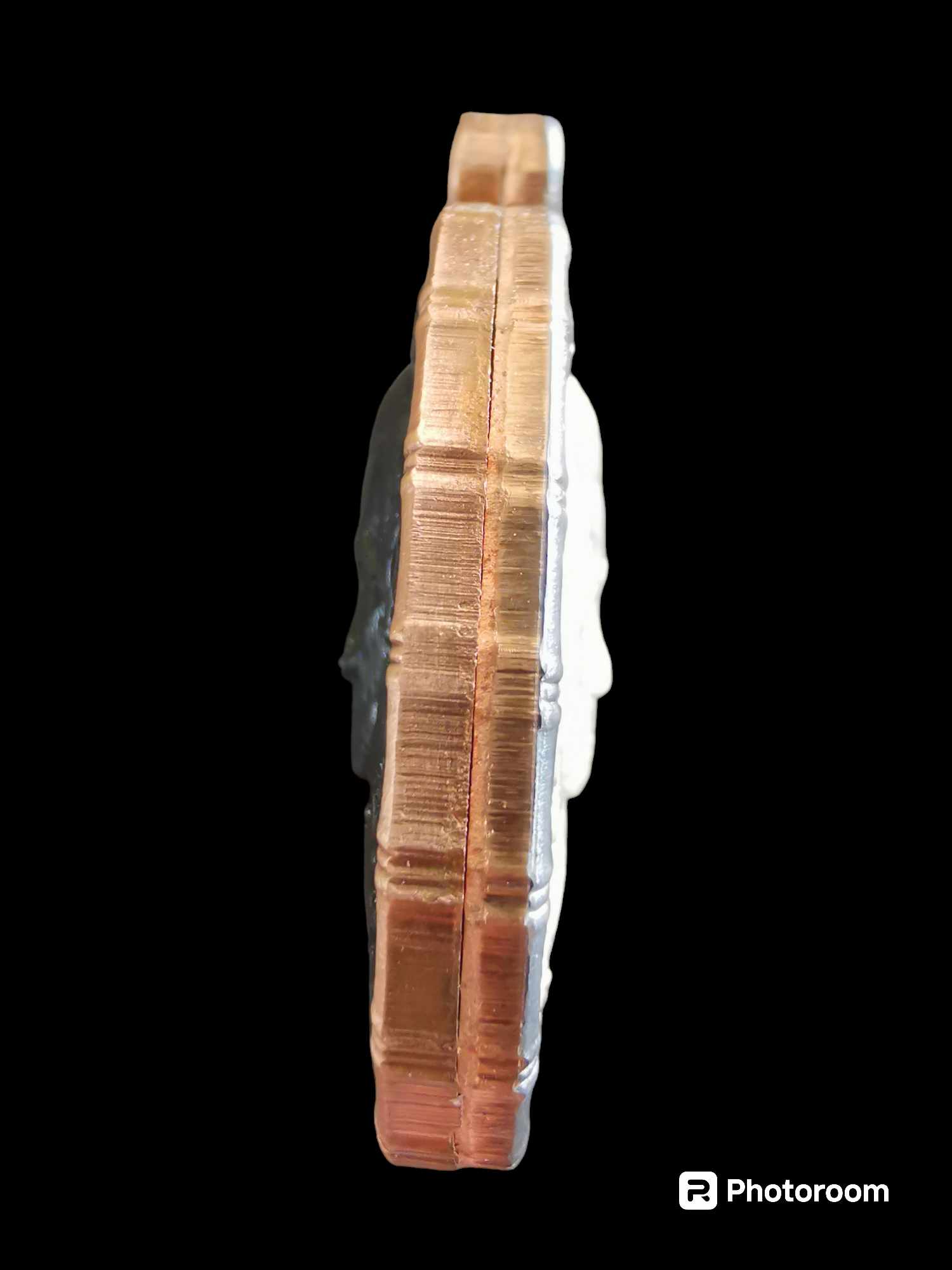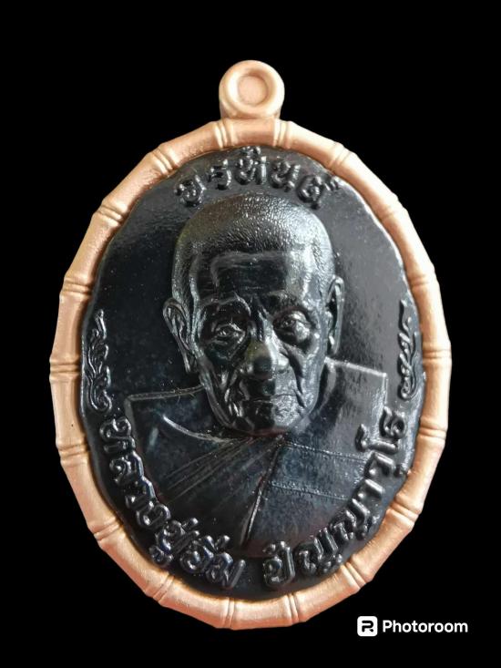 เนื้อทองแดงซาติน หน้ากากวงในชุบเปอร์แบล็ค ประกบ ทองแดงรมดำวงในเงิน รุ่นอรหัน หลวงปู่อิ่ม วัดทุ่งนาใหม่ นครศรีธรรมราช |