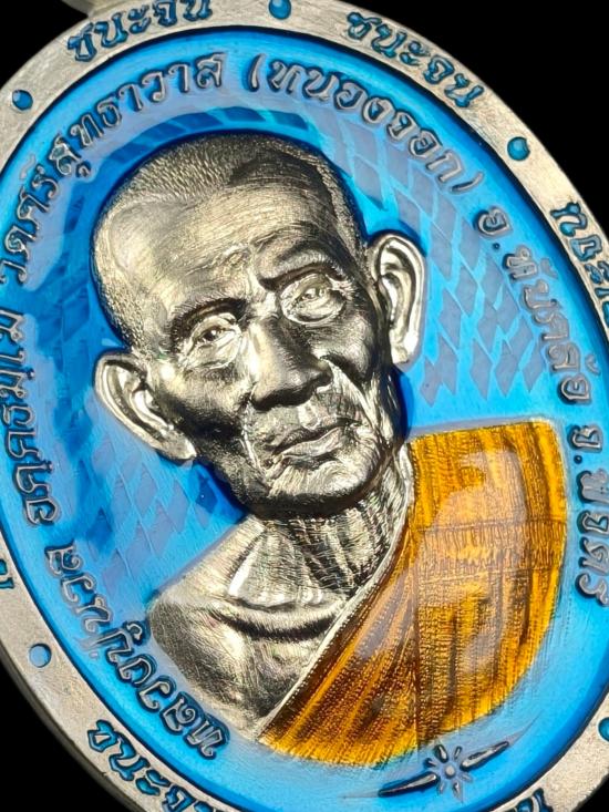 เริ่ม 99.- *** เหรียญชนะจน 8 รอบ เนื้ออัลปาก้า ลงยาฟ้า ลงยาจีวร ขอบฟ้า เลขโค๊ต 56 หลวงปู่นวล อัคคธัมโม วัดหนองจอก จ.พิจิตร ปี 2567 |