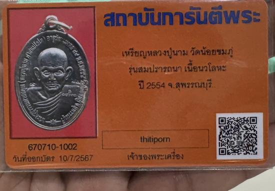 เหรียญสมปรารถนา หลวงปู่นาม วัดน้อยชมภู่ เนื้อนวะโลหะ ปี 2554