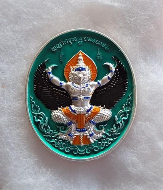 เหรียญพญาครุฑ หลวงปู่ศิลา วัดโพธิ์ศรีสะอาด รุ่นยอดบารมี ลังนำฤกษ์ เนื้อกะไหล่เงินลงยา เลขสวยNo.6 |