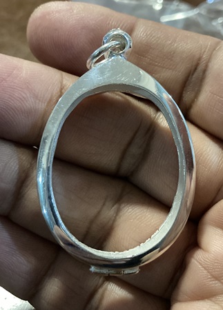 ตลับเงินปัดเงา ทรงรูปไข่ ขนาดขอบใน (กxสxหนา) (2.7 x 3.6 x0.6) Cm.หรือขนาดเหรียญใกล้เคียง |