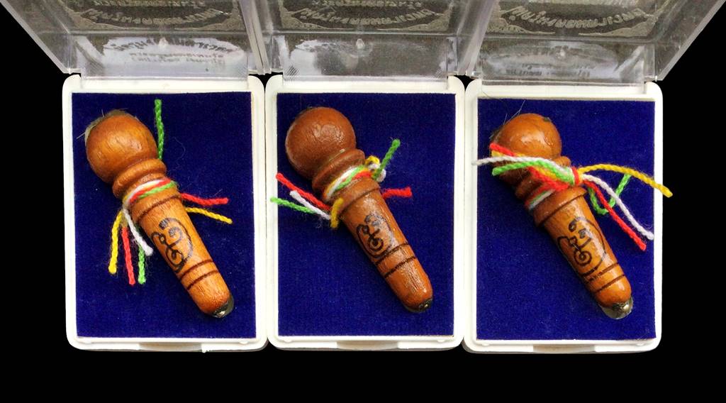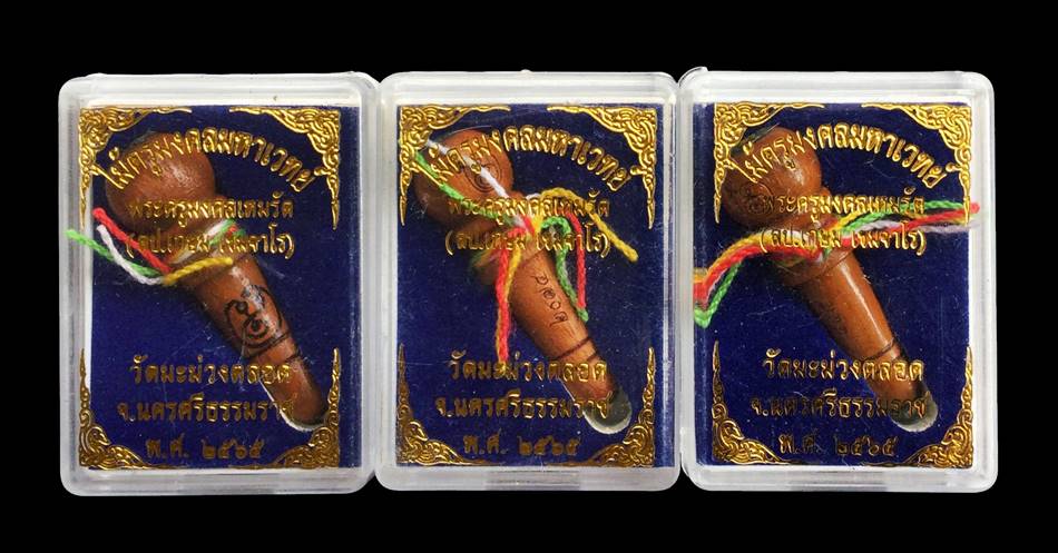 +!!เคาะเดียวllดง ตลอดสาย!!+ (รับ 3 อัน) ไม้ครูมงคลมหาเวทย์ หลวงปู่เกษม วัดมะม่วงตลอด จ.นครศรีธรรมราช ปี65 ขนาดยาว 4.5 ซม. อุดมวลสาร เพชรหน้าทั่งเส้นเกษา ด้านปลายฝังมวลสาร+เม็ดเงินแท้ มีจารและหมายเลขตามรูป พร้อมกล่องครับ