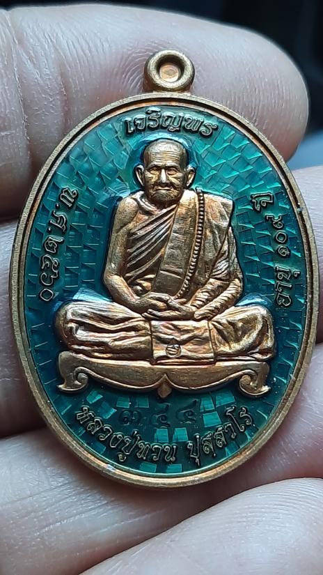 เหรียญเจริญพร หลวงปู่ทวน เนื้อสัตตะโลหะลงยาสีฟ้า /หมายเลข 344 |