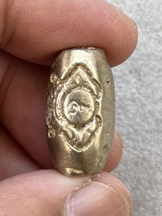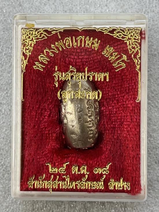 ลูกสะกด รุ่นสุริยุปราคา (ยันต์พระราหู) หลวงพ่อเกษม เขมโก เนื้อชินปรอทเงิน ฝังตะกรุด ตอกโค๊ต ปี 2538 (เป็นรุ่นแรกและรุ่นเดียว) พร้อมกล่องเดิมๆ |
