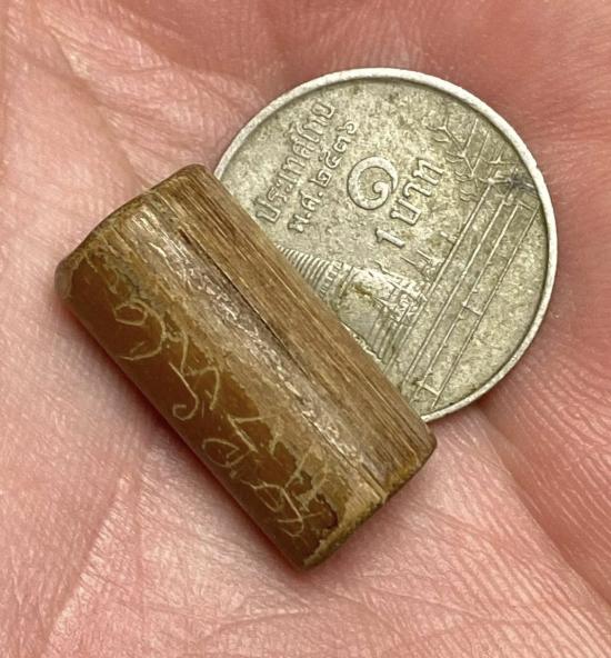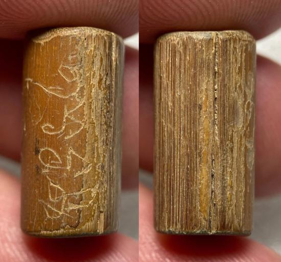 ตะกรุดไม้ไผ่ มีรอยจาร (ไม่ทราบที่) จำนวนหนึ่งชิ้นค่ะ |