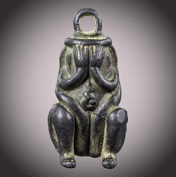 พระปิดตา พิมพ์นั่งยอง (ไม่ทราบที่)เนื้อตะกั่ว สภาพเก่ามีอายุ |