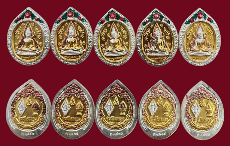 ( 5 องค์ ) เหรียญพระพุทธชินราช พิมพ์ รูปไข่ พิมพ์เล็ก เนื้อสามกษัตริย์ลงยา รุ่น ปิดทอง ปี 2547 สภาพสวยเดิมๆ มีโค๊คทุกองค์ครับ |