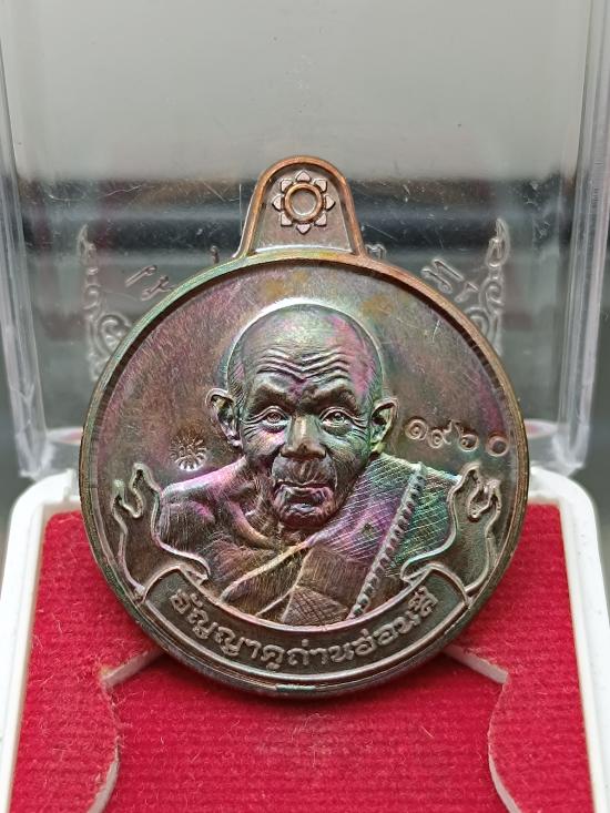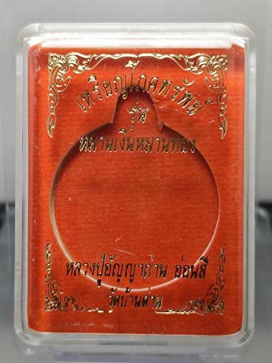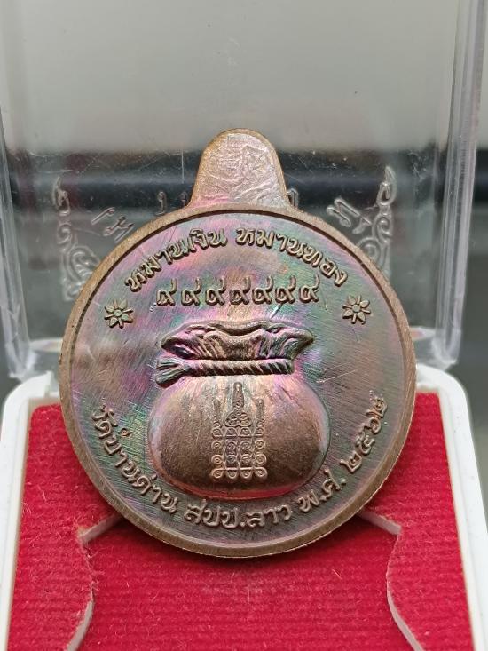 เหรียญโภคทรัพย์ รุ่น หมานเงินหมานทอง หลวงปู่อัญญาถ่านอ่อนสี วัดบ้านด่าน สปป.ลาว เนื้อทองแดงผิวรุ้ง หมายเลข 1960 |
