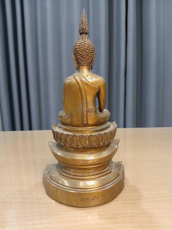 พระบูชาพระพุทธรังสิโยภาสสุขพิพัฒน์ วัดป่าแสงอรุณ จ.ขอนแก่น ปี 2541 หน้าตัก 3 นิ้ว สูง 9 นิ้ว ฐาน 5 นิ้ว เนื้อทองเหลืองรมดำอ่อนหล่อหนา |