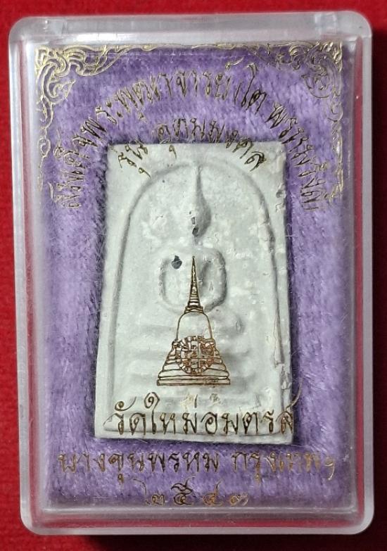 พระสมเด็จ(โต) วัดใหม่อมตรส บางขุนพรหม ปี2543 รุ่นอุดมมงคล พระสภาพสวยมากๆ โรยก้อนบางขุนพรหมและที่ด้านหลังปั้มตราชัดเจน มาพร้อมกล่องเดิมๆด้วยนะครับ |