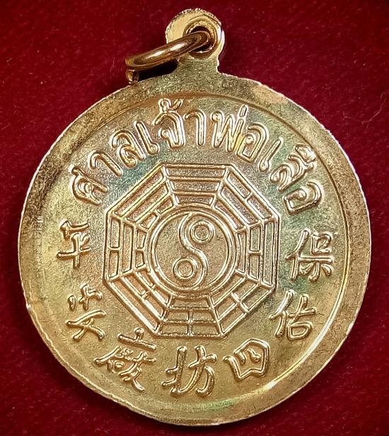 เหรียญ เจ้าพ่อเสือ หลังยันต์แปดทิศ ศาลเจ้าพ่อเสือ เสาชิงช้า....กะไหล่ทอง |