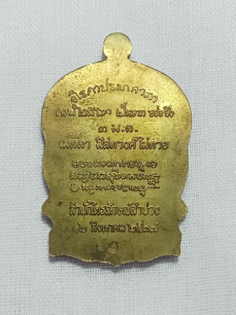ชื่อพระเครื่อง เหรียญนั่งพาน 3ม.ต. หลวงพ่อเกษม เนื้อทองฝาบาตร ปี2537 พร้อมกล่อง ( องค์ที่ 3)