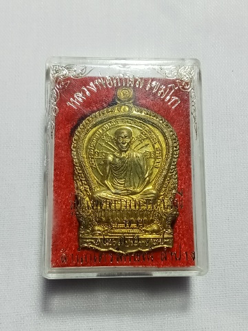 เหรียญนั่งพาน 3ม.ต. หลวงพ่อเกษม เนื้อทองฝาบาตร ปี2537 พร้อมกล่อง ( องค์ที่ 3)