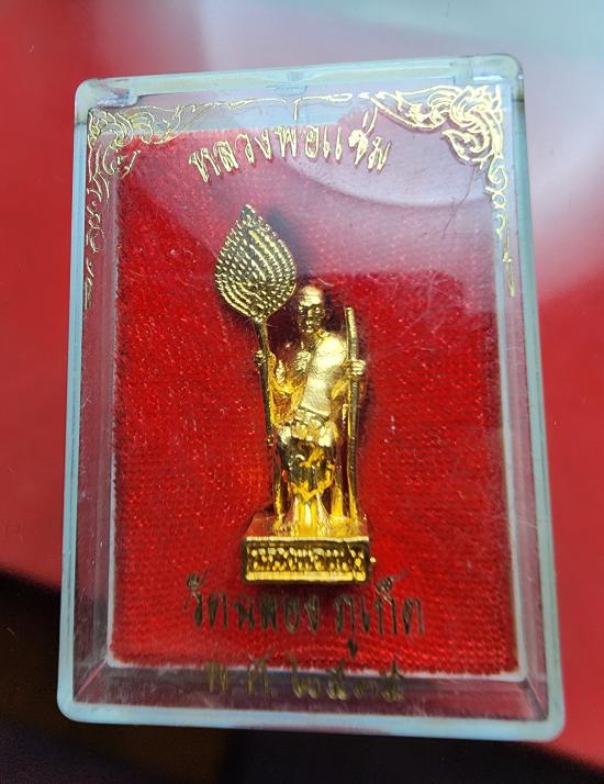 รูปหล่อนั่งถือพัดยศ หลวงพ่อแช่ม วัดฉลอง จ.ภูเก็ต เนื้อกะไหล่ทอง จัดสร้างขึ้นในปี พ.ศ. 2535 มีขนาดสูงจากปลายพัดยศถึงฐาน 3.2 ซ.ม. สภาพสวยสมบูรณ์ พร้อมกล่องเดิมจากวัดครับ