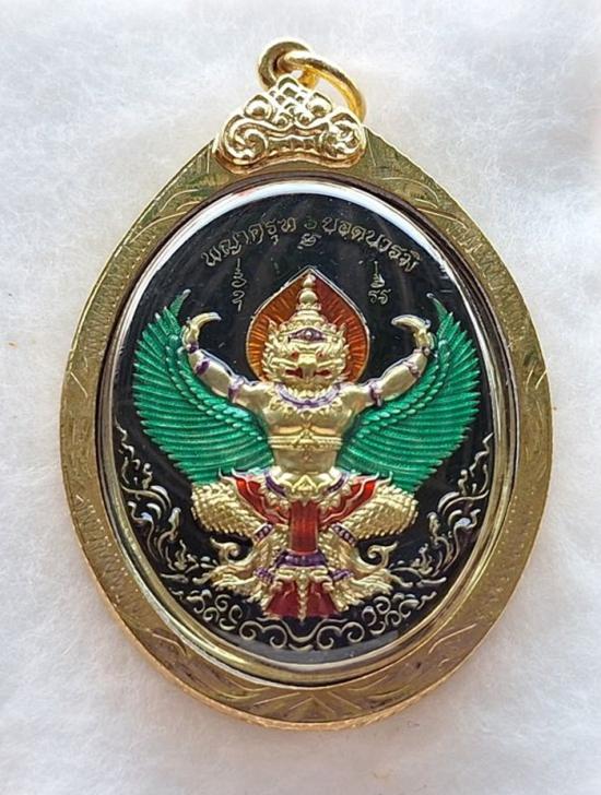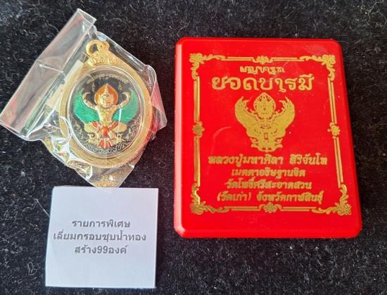 เหรียญพญาครุฑ หลวงปู่ศิลา วัดโพธิ์ศรีสะอาด รุ่นยอดบารมี ลังนำฤกษ์ เนื้อทองทิพย์ ลงยาพื้นดำ เลี่ยมกรอบชุบน้ำทอง No.29 |