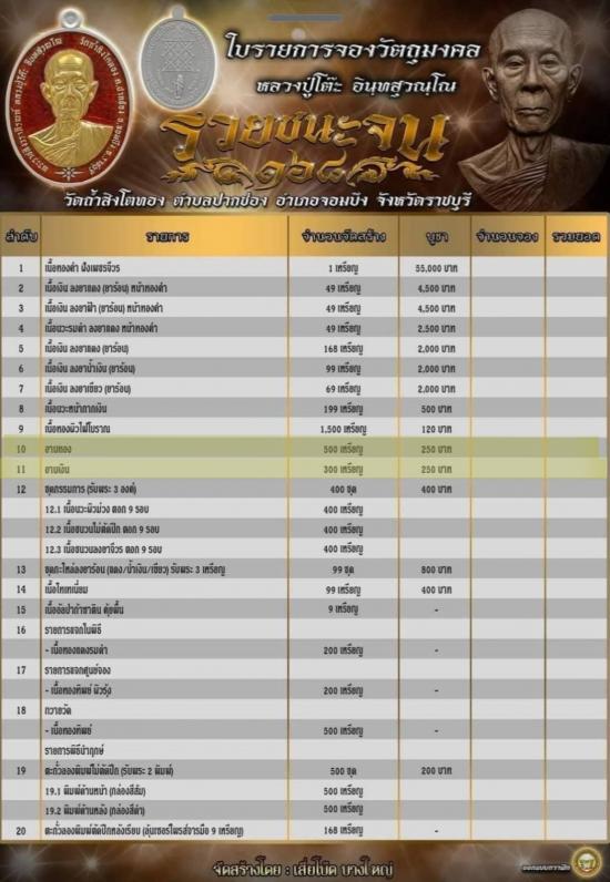 เหรียญ รุ่น"รวยชนะจน ๑๖๘" หลวงปู่โต๊ะ อินทสุวัณโณ วัดถ้าสิงโตทอง ราชบุรี รายการจองที่ 10 เป็นเนื้อชุบทอง เหรียญเงาวับ เหรียญสวยมากครับ องค์นี้รับไปแบบไม่แกะซีล เอาไป"ลุ้น"หมายเลขเอานะครับ เปิดให้เบ |