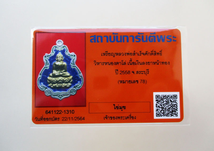 พร้อมบัตรรับรองพระแท้ จากสถาบันการันตีพระ !! |