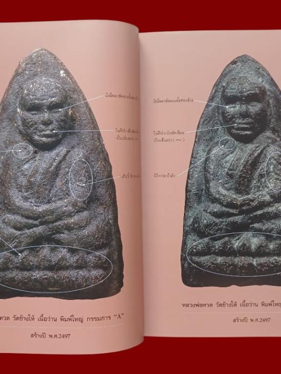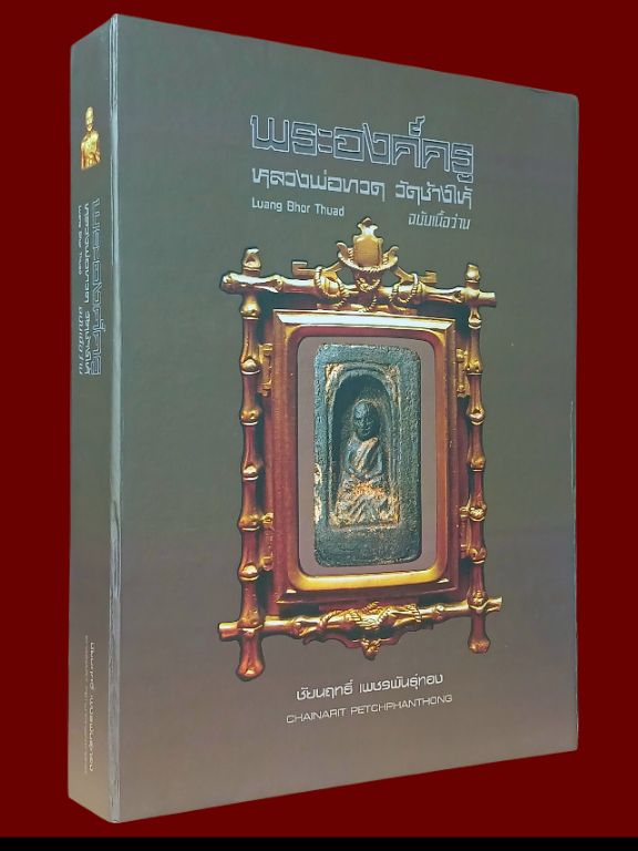 พระองค์ครู หลวงพ่อทวด วัดช้างให้ ฉบับเนื้อว่าน" ซึ่งเป็นผลงานการเรียบเรียงโดย ชัยนฤทธิ์ เพชรพันธุ์ทอง เป็นหนังสือปกแข็งขนาดใหญ่ (ประมาณ 27.5 x 36 x 5.5 ซม.) พิมพ์ด้วยกระดาษอาร์ตสี่สีสวยงาม ความหนาประมาณ 535 หน้า และมักบรรจุมาในกล่องแม่เหล็กอย่างดี สภาพสวย |