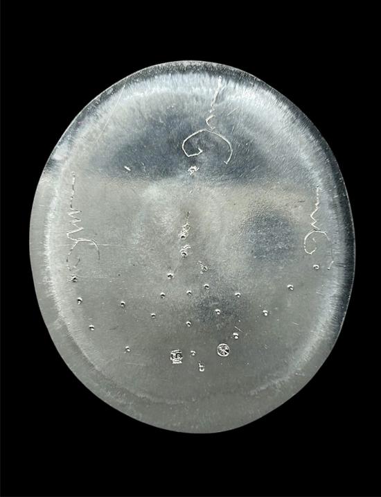 เนื้อตะกั่วลองพิมพ์หลังเรียบจาร 1 ใน 9 เหรียญมงคล