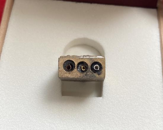 นำมาหลอมรวมกับแผ่นทองคำจารมือ ใต้ฐานองค์พระฝังตะกรุด 3 ดอก (เงิน ทอง นาค) และอุดผงมวลสารของพระอาจารย์ต้อม